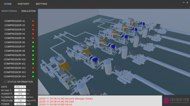 대주기계는 산업 공정에 적용되는 CDA(Compressed Dry Air) 시스템을 위한 디지털 트윈 기반 모니터링 및 시뮬레이션 통합 플랫폼을 개발 완료했다고 밝혔다.