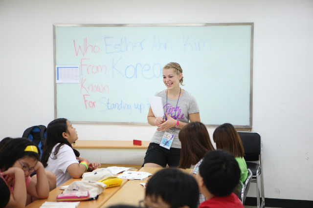 한국 Awana(어와나)의 어린이 여름캠프 영어수업 진행 모습